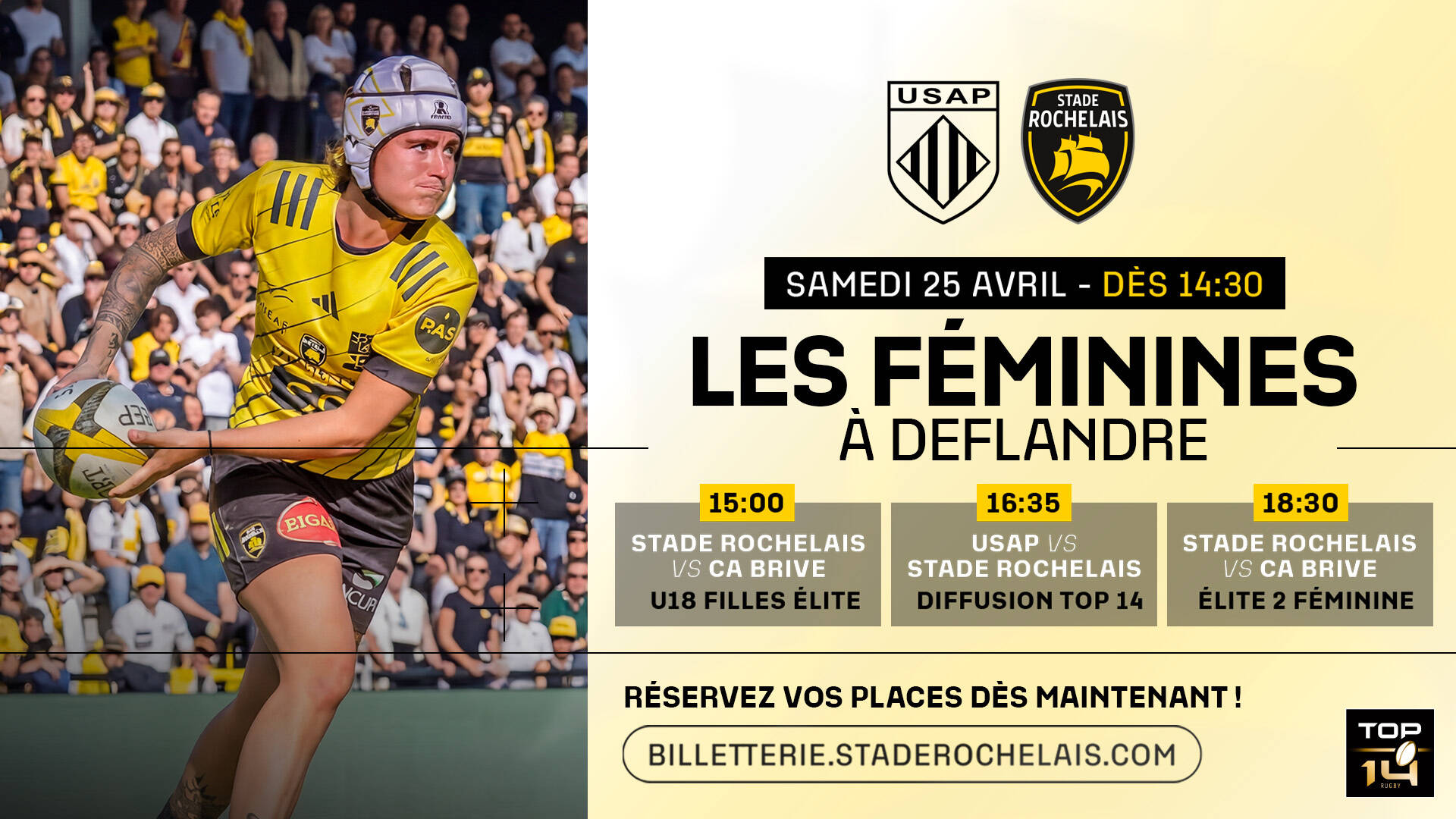 Réservez dès à présent votre samedi 25 avril pour une journée de folie à Marcel Deflandre ! Au programme, les U18 Filles Élite et l’Élite 2 sur la pelouse, mais aussi la diffusion du déplacement de l’équipe professionnelle à Perpignan au Village et dans le Stade ! On compte sur vous !