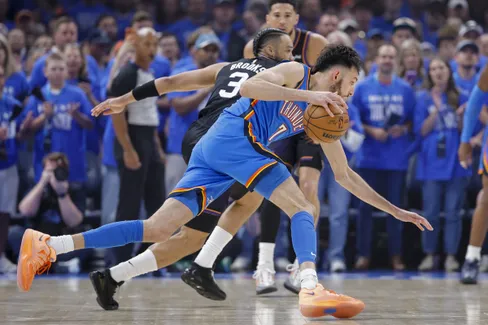 Agressif d’entrée, Chet Holmgren s’est révélé précieux après la sortie rapide pour deux fautes d’Isaiah Hartenstein, inscrivant 13 points dans le premier acte, conclu sur une action spectaculaire : une passe laser de Jaylin Williams à 2,7 secondes de la fin, suivie d’un tir à 3-points au buzzer de son coéquipier.