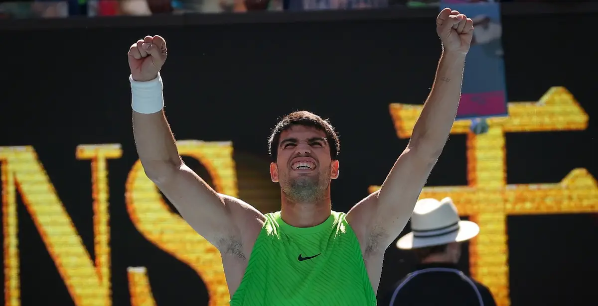 Alors qu’il disputait le 100e match de sa carrière en Grand Chelem, ce vendredi au troisième tour de l’Open d’Australie face à Corentin Moutet (victoire 6–2, 6–4, 6–1), Carlos Alcaraz a dépassé tous les meilleurs joueurs de l’histoire, à l’exception de Bjorn Borg, en termes de précocité.