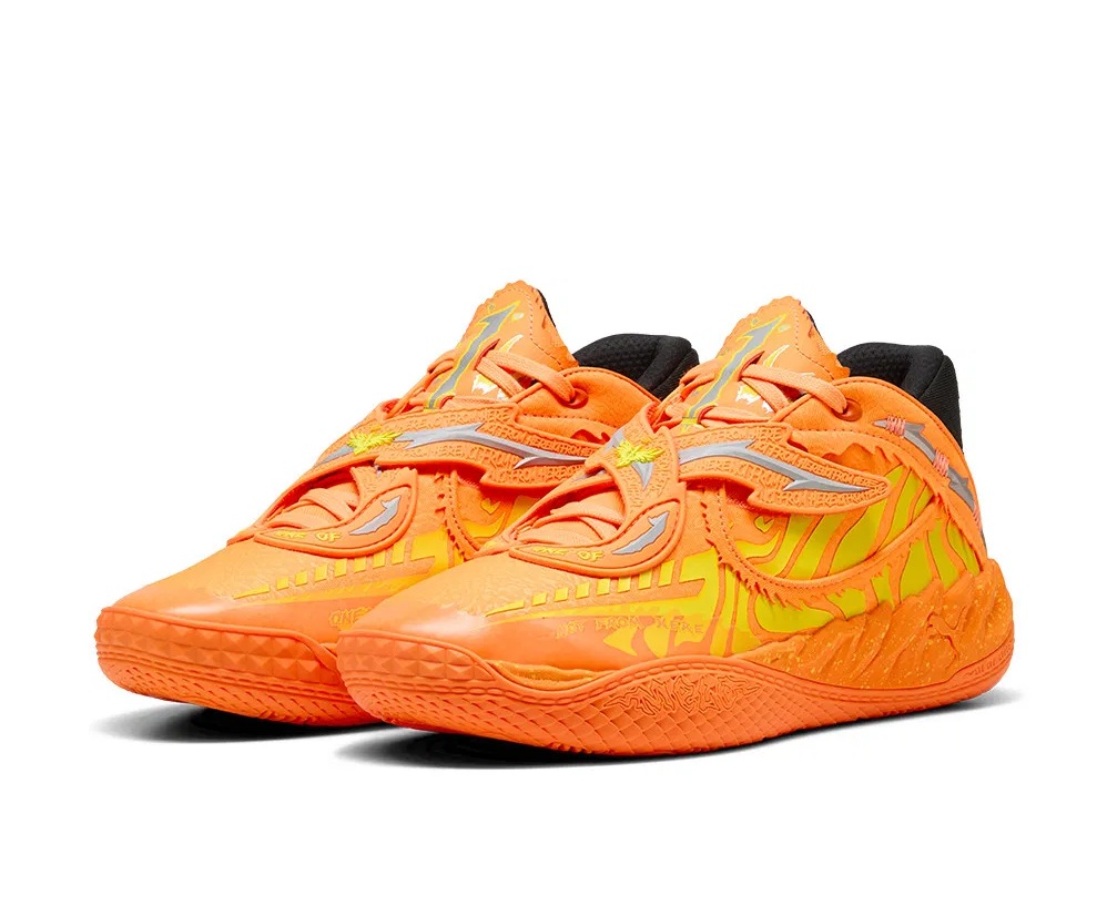 Puma et le meneur des Hornets ont misé sur un design toujours plus saisissant, dans le plus pur style de la collection, pour permettre à cette cinquième version de se démarquer. Les fameux « scratchs ailés » pour recouvrir les lacets forment la touche spéciale MB.05, au même titre que le motif de crâne moulé sous le talon, et bon nombre d’autres nouveaux détails.