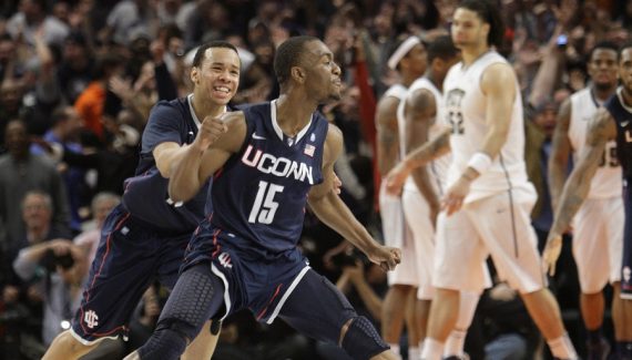Les deux équipes s’affrontent en quart de finale du tournoi de la « Big East ». Il reste quelques secondes à jouer. Égalité 74 partout et la balle est dans les mains de Kemba Walker, la star des Huskies.