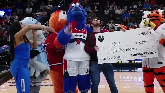 Le principe était simple : un supporter, les yeux bandés, devait tenter un tir du milieu du terrain avec la promesse de remporter 10 000 dollars en cas de réussite. Sauf qu’après son shoot manqué, l’animatrice, les mascottes et une partie de la salle ont fait semblant de célébrer un panier gagnant. Mieux encore, le fan s’est vu remettre un chèque géant, avant que la supercherie ne soit révélée quelques instants plus tard sur l’écran géant…