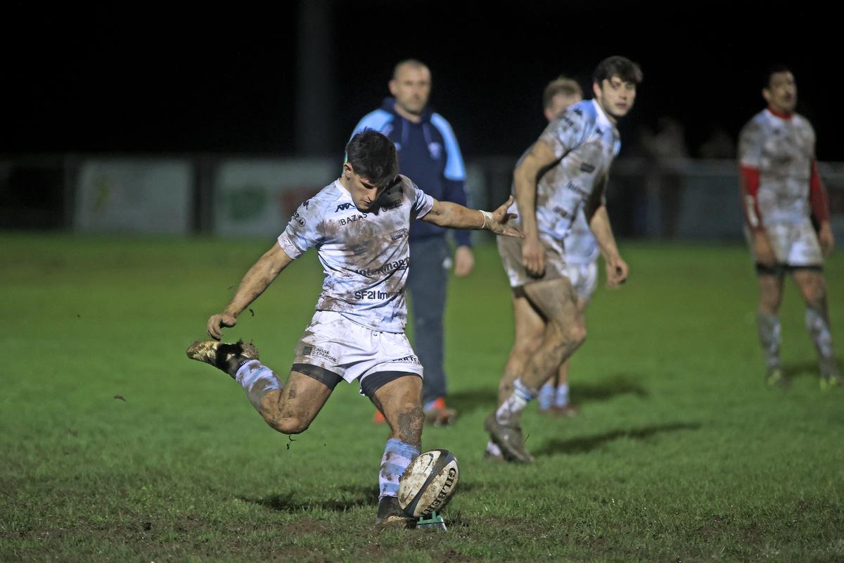 BAZAS 1 essai Charrier (41e), 1 transformation Gourg (41e), 3 pénalités Commere (30e), Gourg (54e, 64e)